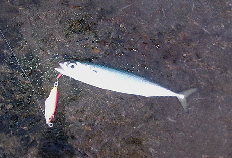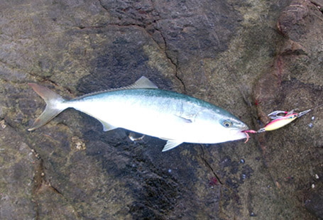 私がワカシを釣り上げた後、二人の方が、ワカシかイナダを釣り上げた。