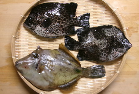 今日は、NMさんから、27〜28cmのカワハギと、イシガキダイを2匹頂いた。