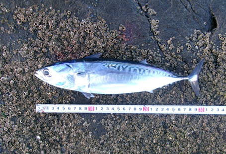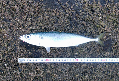 このサイズは見かけない…普段は、沖にいるサバだろう。