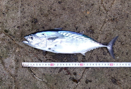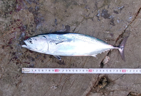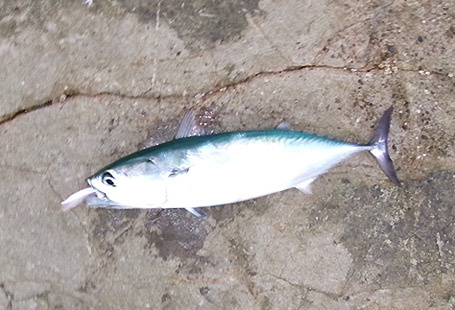 やがて、隣に荷物を置いていたhijiさんが、スマガツオを釣り上げた。