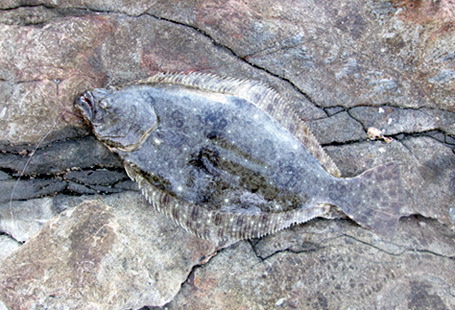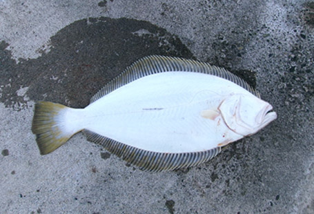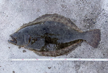 ヒラメを裏返してみた。 裏側は、真っ白…天然ものだ。 養殖、放流したものは、裏側に黒いシミができる。 以前、浜名湖で、黒いシミのあるヒラメを釣った時、教えて貰った。