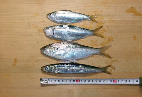 ウルメはヒキが強く、竿先が突っ込まれて、ビックリ